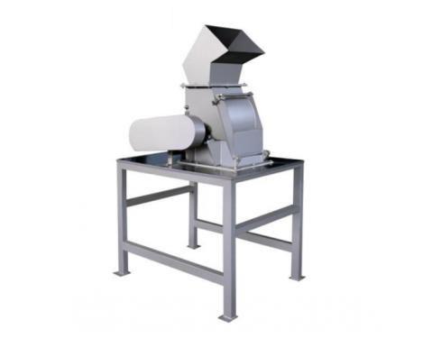 该机由机架、机身、门盖、进料斗、飞刀、出料斗、传动电机等部件组成。工作时电机带动主轴旋转。由前道工序升运上来的物料落入进料斗中,物料进入机身后由于主轴上的飞刀高速旋转,从而使物料得以破碎,破碎后的物料从筛网上的腰形孔中落入至出料口。