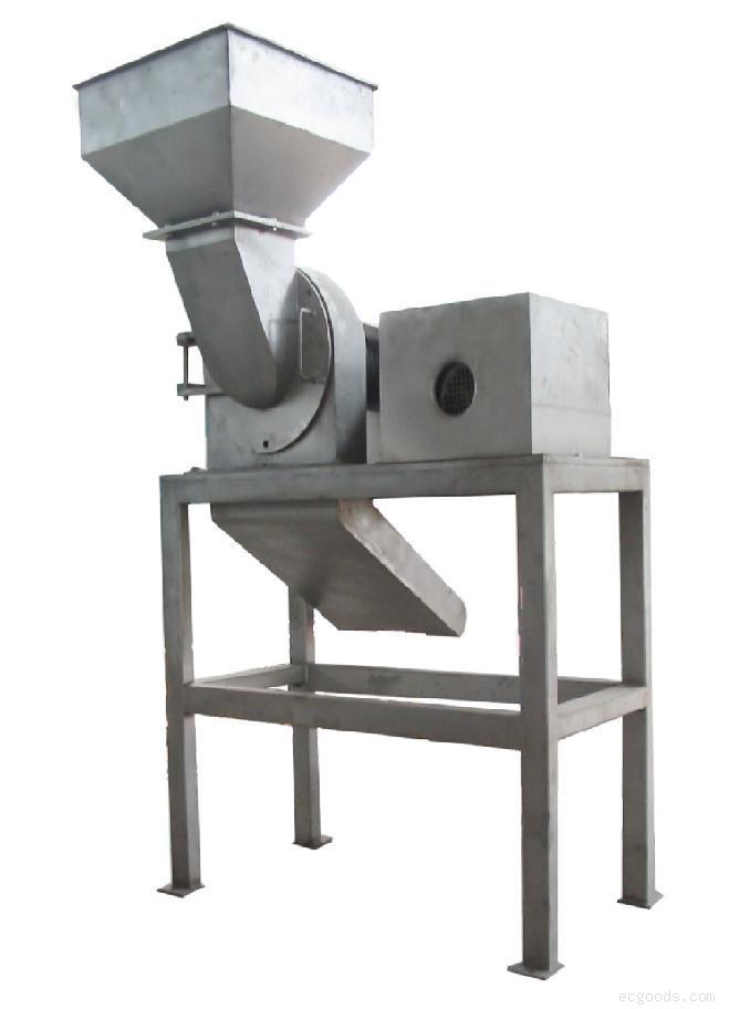 该机主要由:进料斗、破碎部件、支架、出料斗、传动部件等组成,接触物料部件由不锈钢制造。工作原理:飞刀绕自身轴线在固定不动的底刀间隙内旋转,从而使果蔬破碎,转子上有四组飞刀底刀为一组,视果蔬种类不同,出料斗有斗式和管式两种型式。在进料斗上部加上缓冲装置,可得到粒度更细的物料。