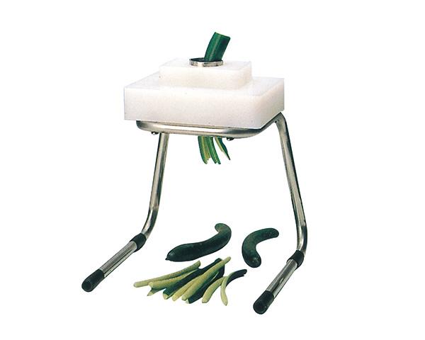 将所需刀片和外衬套放妥,再将直径25mm或45mm的小黄瓜直立对称切瓣刀片尖口往下,用力重压,另一只手在下面往下拉即可