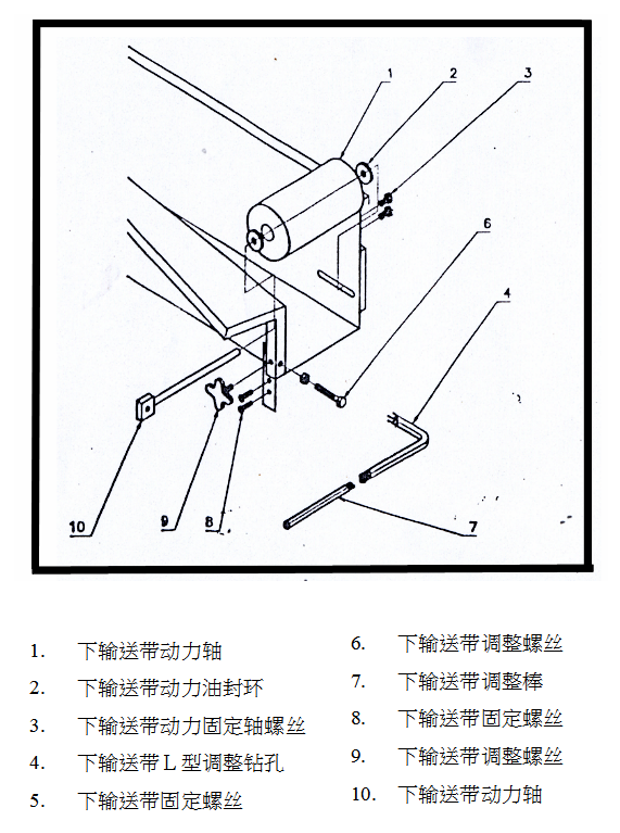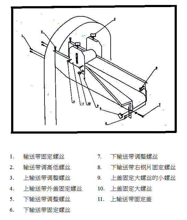 调整左右螺丝并固定好,将输送带方向对正,更换轴承