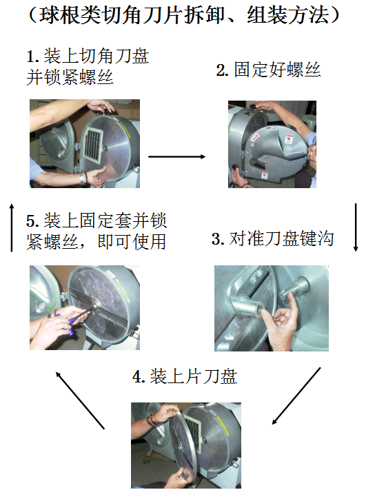 2.   球根类刀片必须用固定螺丝锁紧及装好。