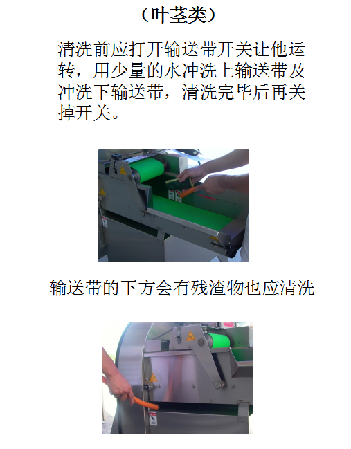 6.   叶菜类产品在放入输送带之前不可太大或太大把,高度应在输送带的皮带下方为准。
